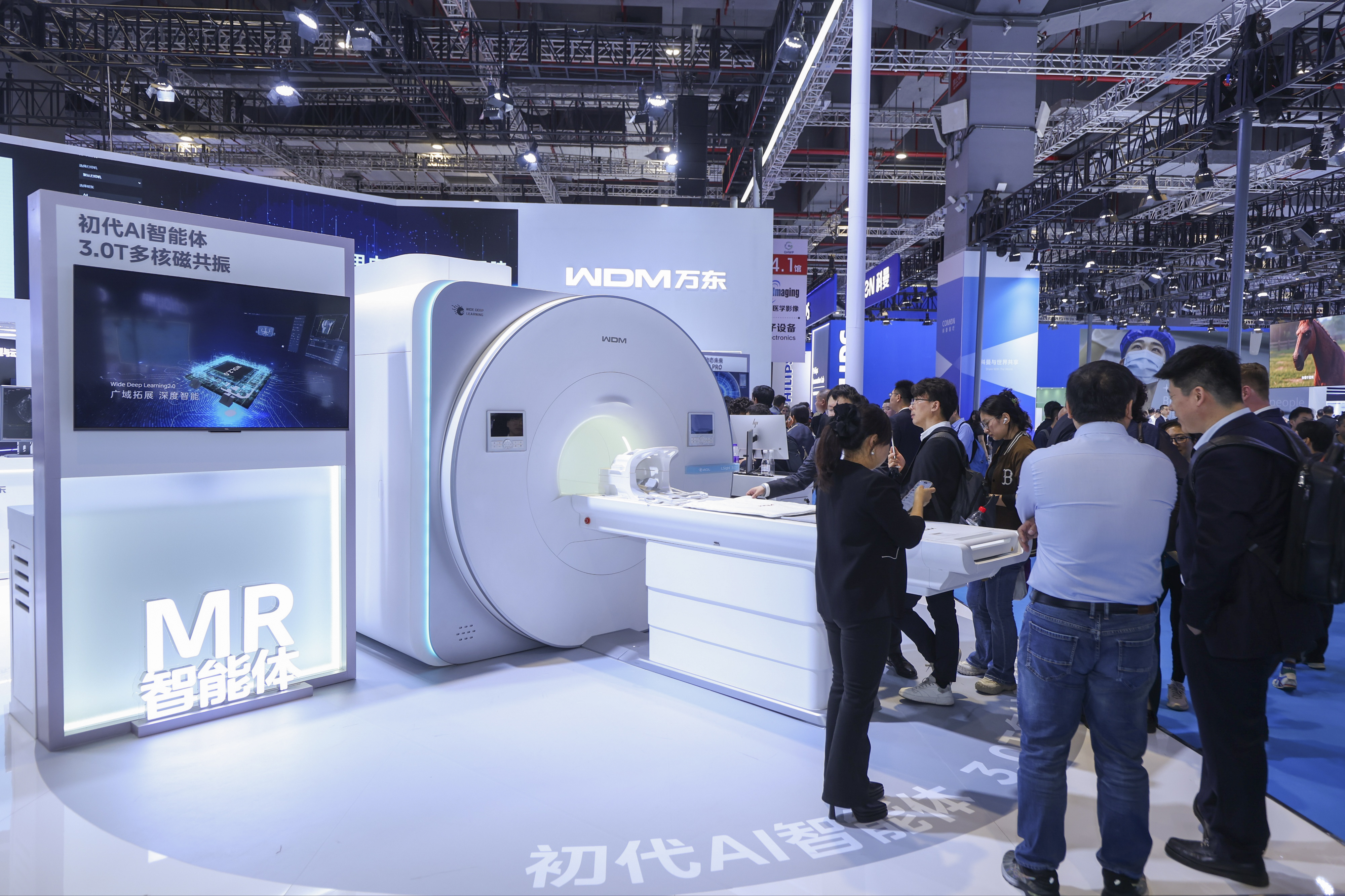 图为2026年春季中国国际医疗器械博览会(CMEF)上的万东医疗展台。提拔焦点合作力。构成了区别于国际巨头的焦点合作力,液氦会持续挥发、需按期弥补,万东医疗推出的初代MR智能体聚焦阿尔茨海默病早筛场景,业内数据显示,“万东无液氦磁共振已正在积水潭病院不变运转三年多。实现微细血管高清成像。”业内人士认为,不只实现了国产高端DSA焦点手艺的自从可控,其可精准识别肺结核、气胸、骨折等20余种常见疾病,“我们用中国数据打制中国脑标尺,建立“硬件设备+智能引擎+临床办事”全链智能生态。正以双轮驱动之势,还能从泉源降低图像噪声取残影,已入选工业和消息化部、国度卫生健康委、国度药监局结合组织的高端医疗配备推广使用目次,”万东医疗MR市场总监冒坚引见,研发团队将AI算法取稀土成像手艺深度融合,万东医疗影像智能体矩阵的另一大立异产物,万东医疗走出了一条“零液氦”的中国式立异之。持续巩固手艺领先地位。